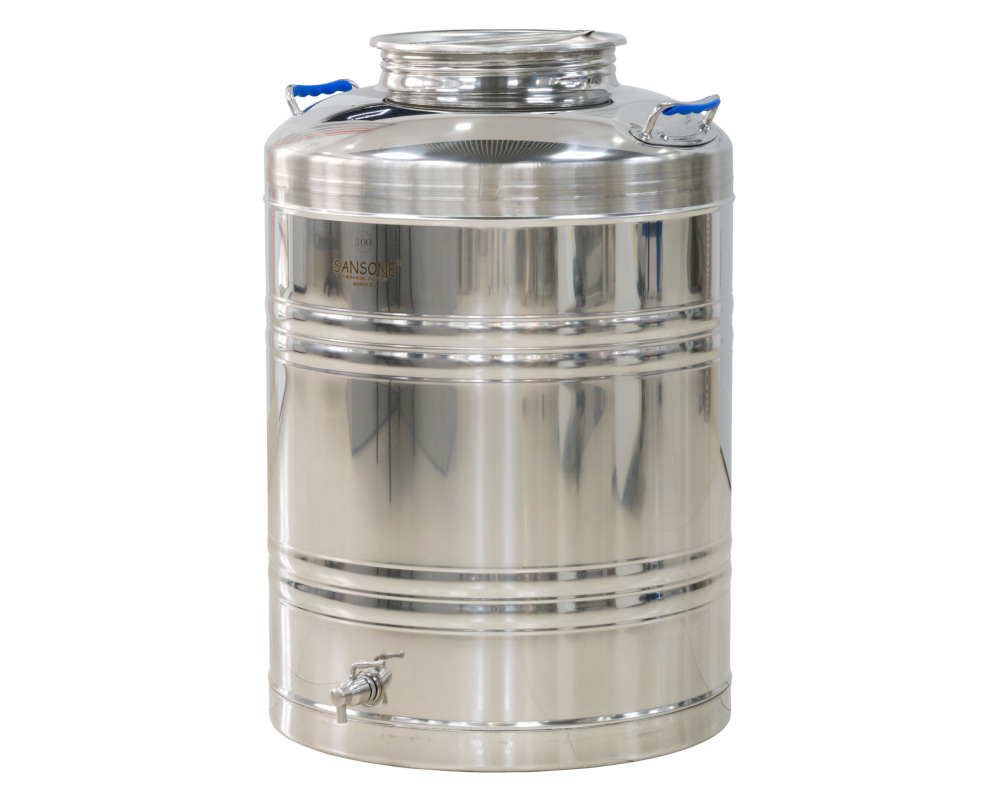 Пищевая бочка из нержавейки, ЕВРО 100 л, с краном, цельнотянутым дном