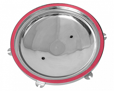 - Прижимная кассета выполнена также из нержавеющей стали толщиной 3 мм и имеет 4 точки прижима по периметру, что обеспечивает плотную и надежную фиксацию банок.
