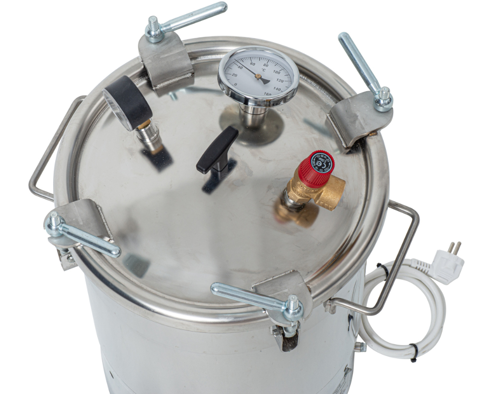 Электрический автоклав из прочной, надежной и безопасной пищевой нержавеющей стали марки AISI 304. Предназначен для консервирования мяса, птицы, рыбы, овощей и фруктов.