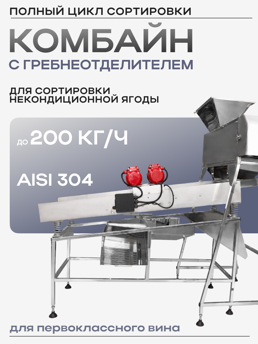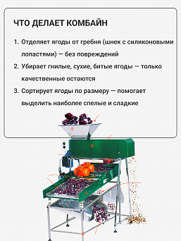 Комбайн для сортировки ягоды с гребнеотделителем - это настоящий прорыв в виноделии! Главное преимущество данного оборудования для виноделов - вы получаете спелые ягоды для изготовления премиального вина гораздо проще и быстрее.