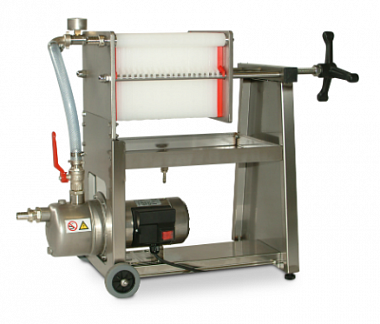 Пластинчатый фильтр с 20 пищевыми полипропиленовыми пластинами практичный и безопасный, гарантирует качество и безопасность фильтрации продукта на высоком уровне. С помощью фильтровального картона можно настроить степень очистки жидкости (грубая очистка, осветляющая очистка, стерилизующая очистка).