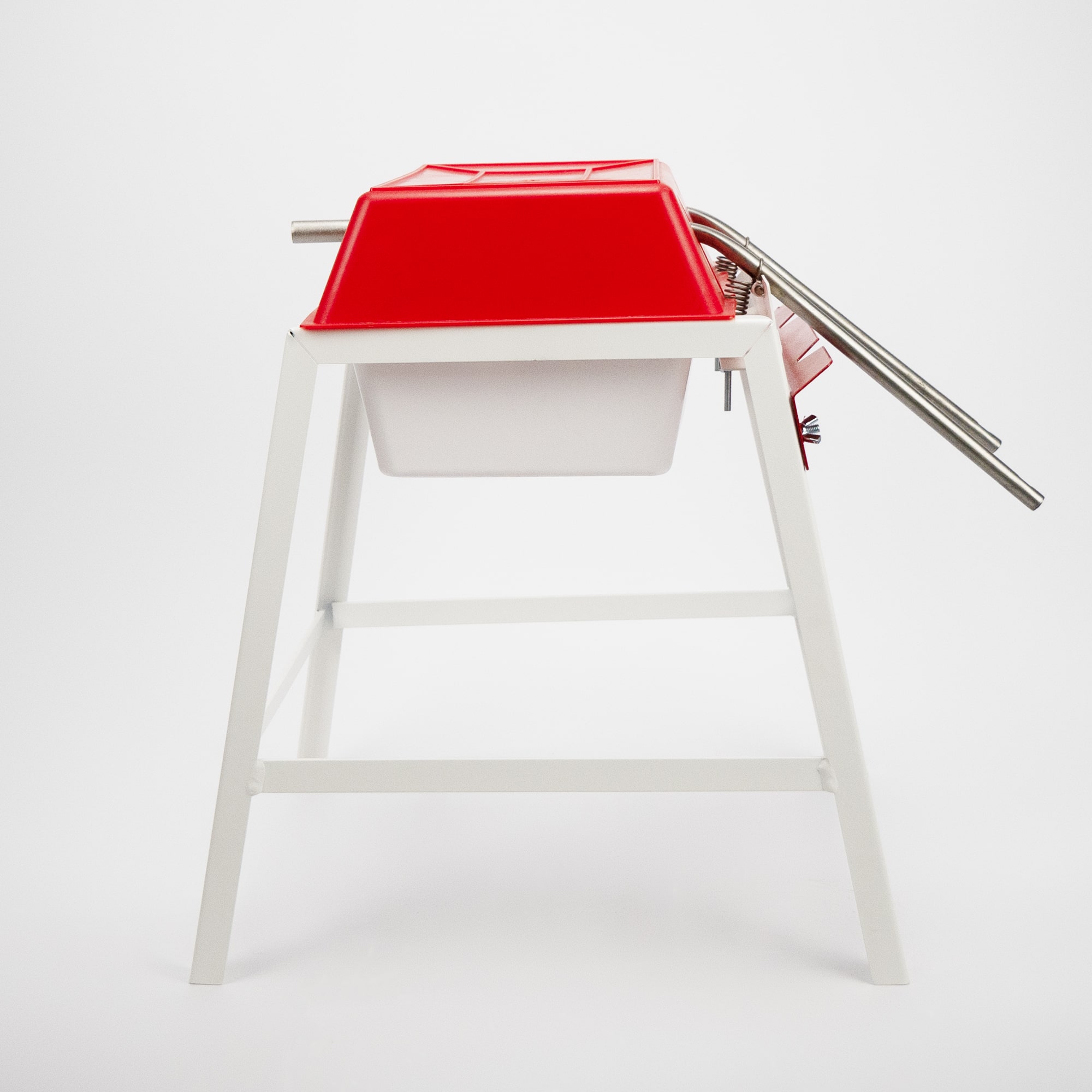 Удобный зажим на соплах поможет установить бутылки. Незаменима для небольших и средних винных производств.